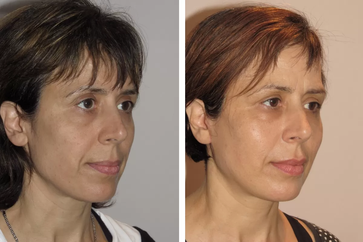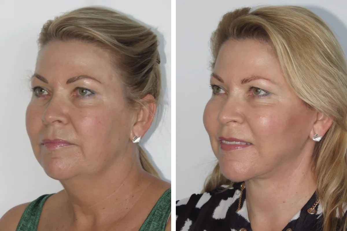 Case Details: 44yo. Signs of facial ageing to the face and neck. Also underwent a Deep Plane Face Lift. Results shown at 3 months.