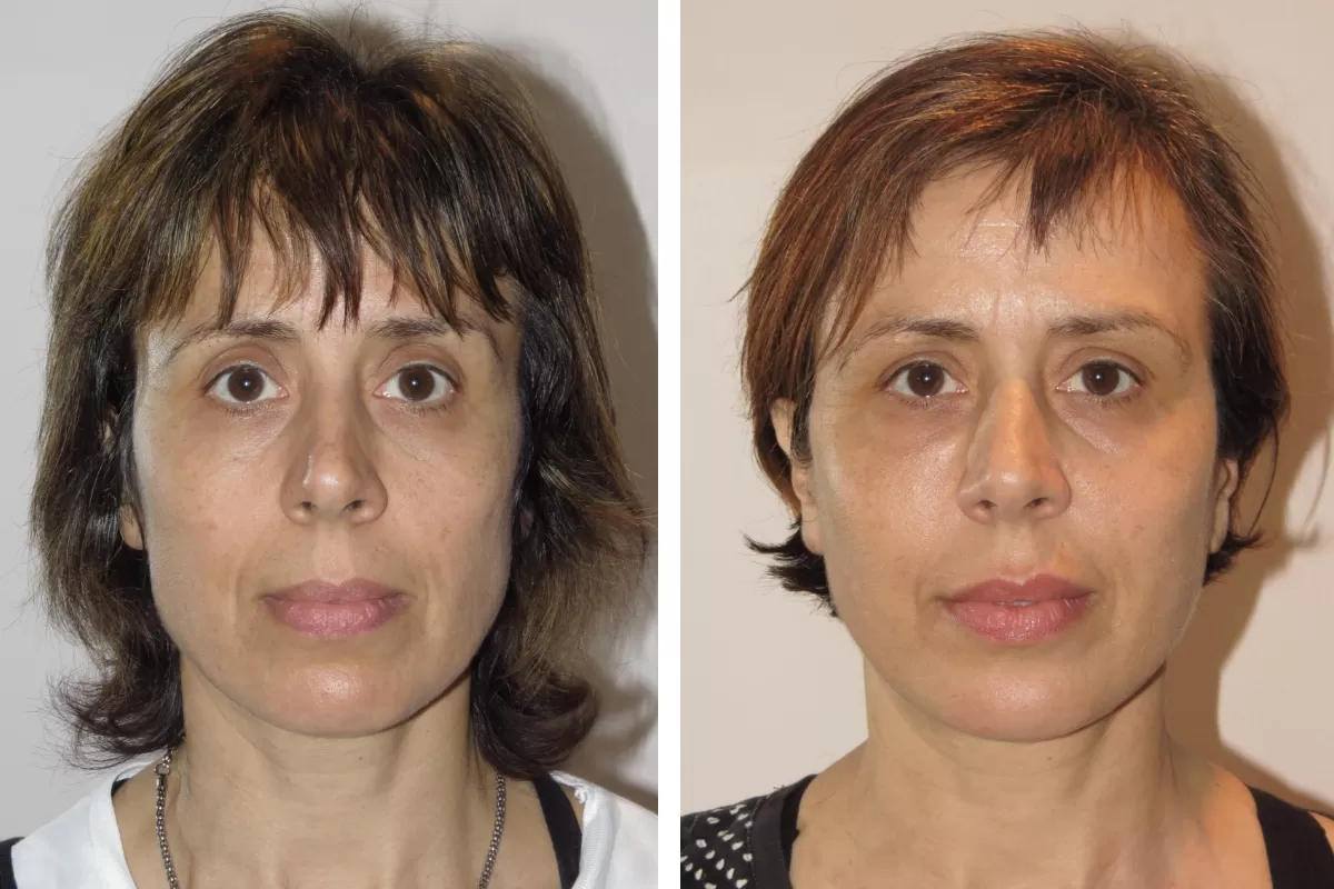 Case Details: 58yo. Signs of facial ageing in the face. Also underwent a Deep Plane Face Lift. Results shown at 3 months.
