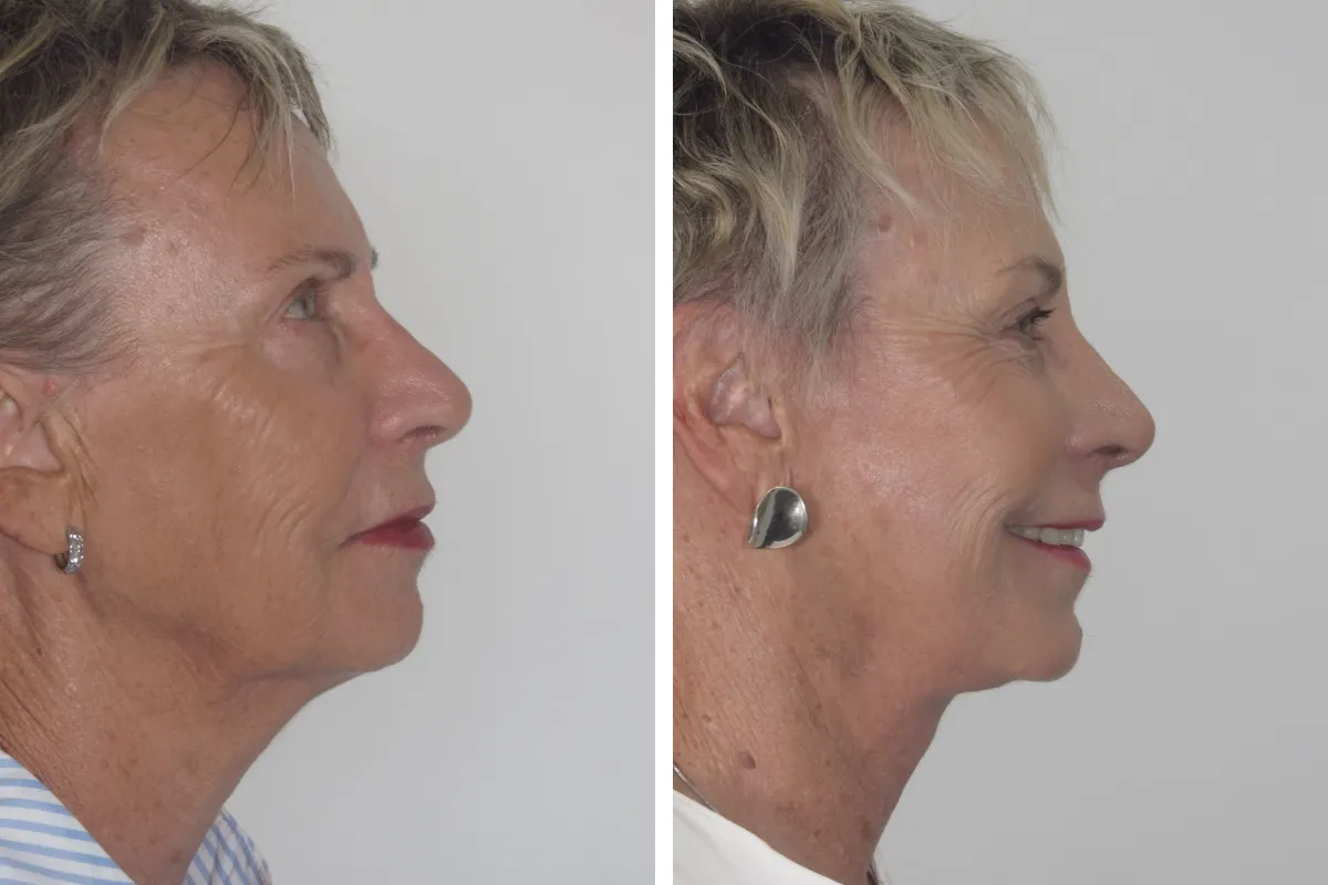 Case Details: 63yo. Signs of ageing in the face and neck. Also underwent a Deep Plane Facelift and Chin Surgery/Genioplasty at the same procedure. Results shown at 3 months.